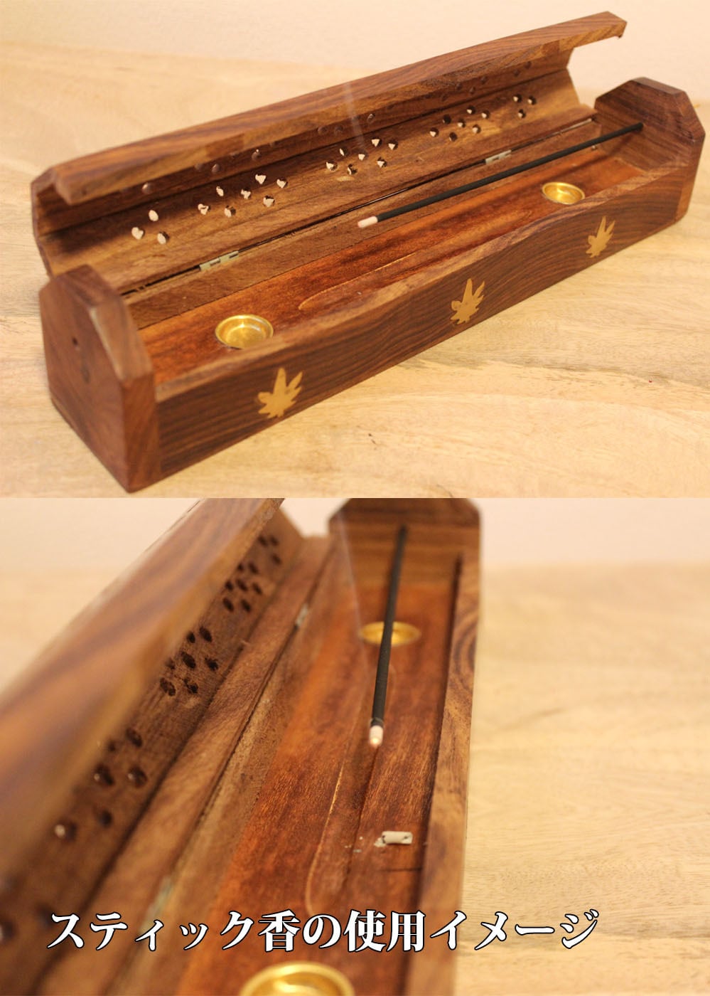 お香立て オシャレ インセンスホルダー 送料無料 ボックス型 蓋つき 横置き シーシャムウッド 真鍮 リラックス お香 線香 スティック コーン お香たて 木製 おしゃれ シンプル かわいい 箱型 プレゼント 灰がこぼれない インド 手作り